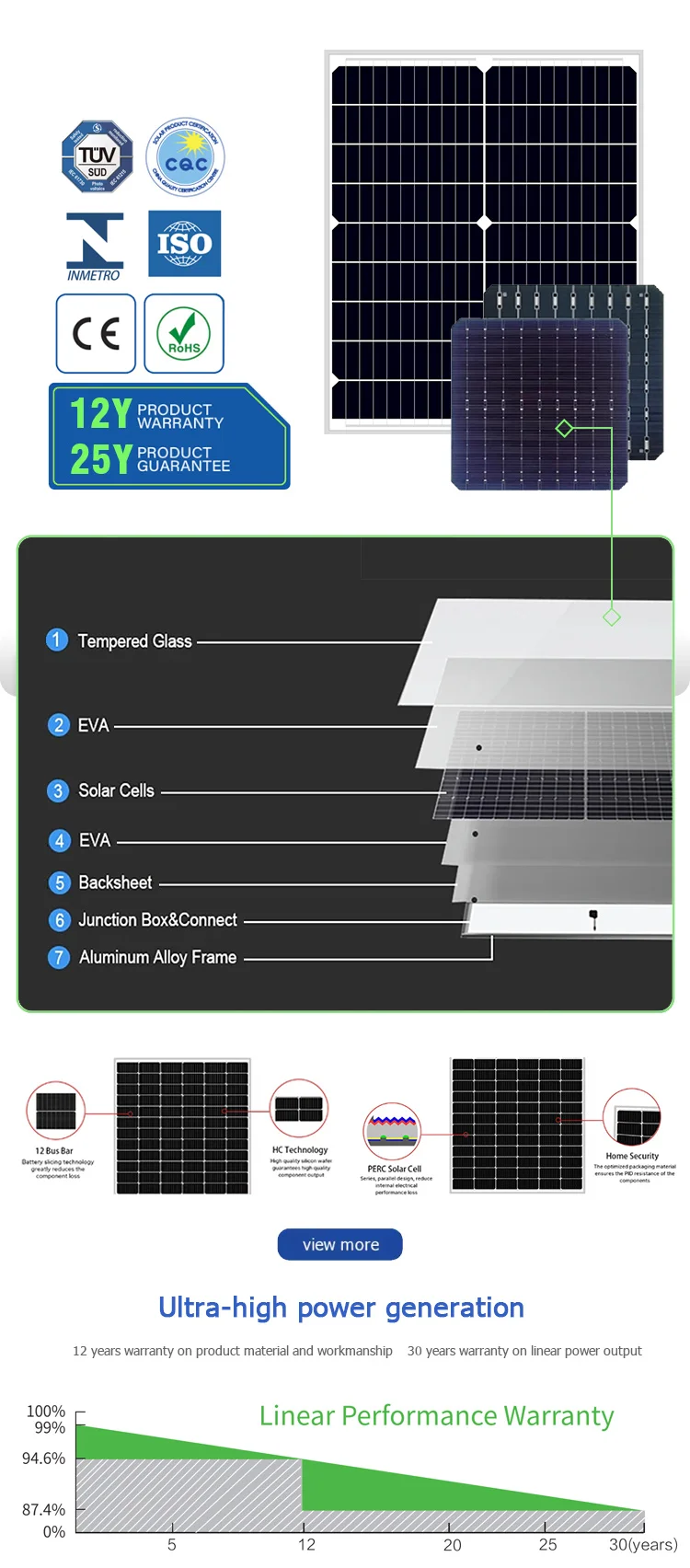 | 1 | Solar panel | 550W 36V solar panels Monofacial Perc 2279*1134*35mm | 12pcs | |||